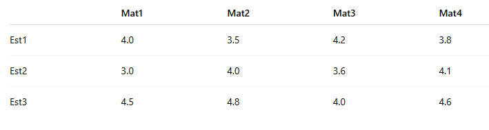 Supongamos que queremos guardar las calificaciones de 3 estudiantes en 4 materias:
